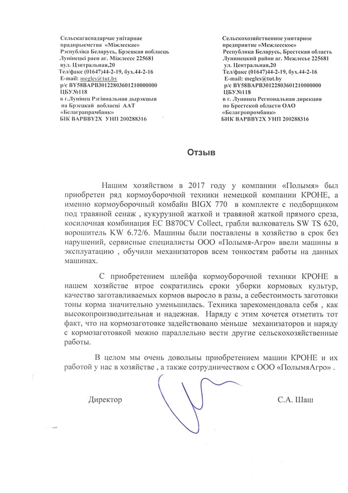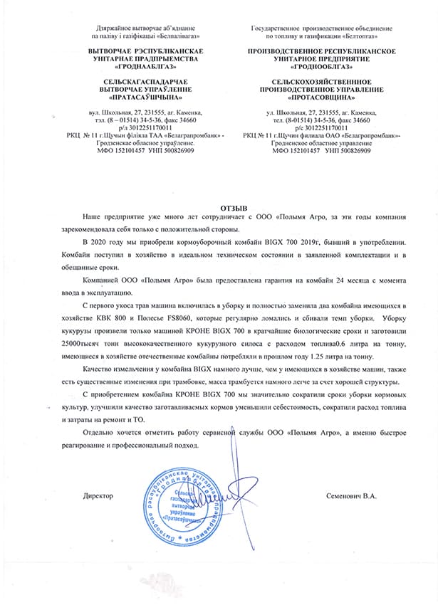 Компания «Полымя Агро» – официальный дилер сельхозтехники Krone на территории Беларуси. В виду отсутствия наценок цена на кормоуборочный комбайн Krone Big X у нас наиболее привлекательная по рынку.