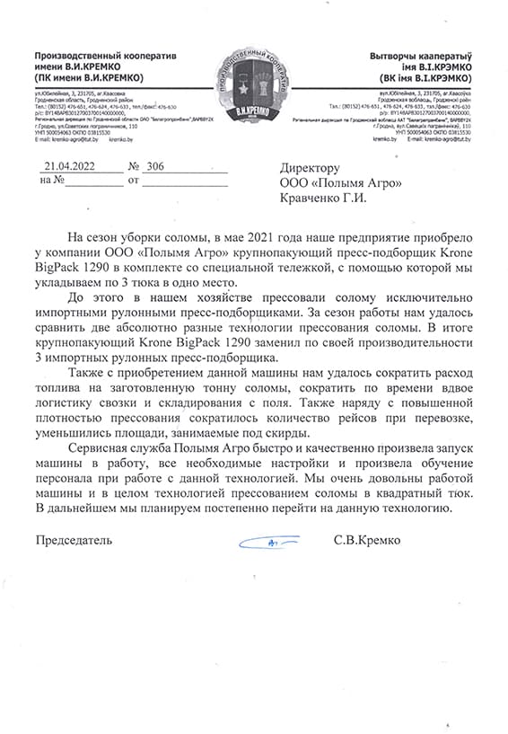 Приобрести пресс-подборщик Krone Big Pack на максимально выгодных условиях вы можете, оформив заказ в ООО «Полымя Агро». Компания выступает официальным дилером немецкого производителя сельхозтехники. Доступные цены на пресс-подборщик Krone Big Pack объясняются прямыми поставками оборудования с завода без посредников. Допускается расчет в удобной форме, в том числе приобретение техники в лизинг, на условиях бартера и др.